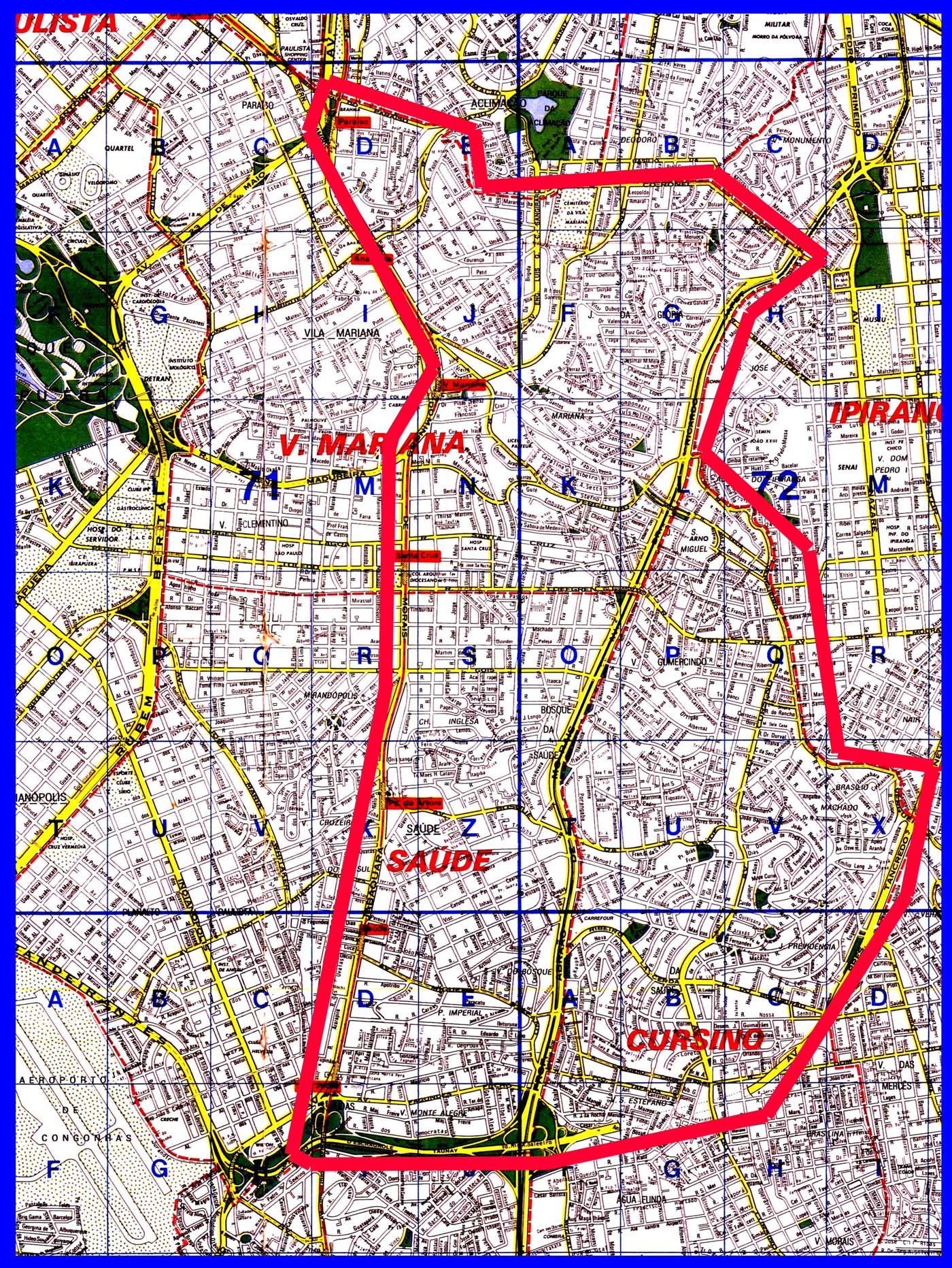 Regiões: Aclimação, Água Funda, Bosque da Saúde, Cursino, Ipiranga, Jardim da Saúde, Klabin, Mirandópolis, Saúde, Vila Gumercindo, Vila Mariana.